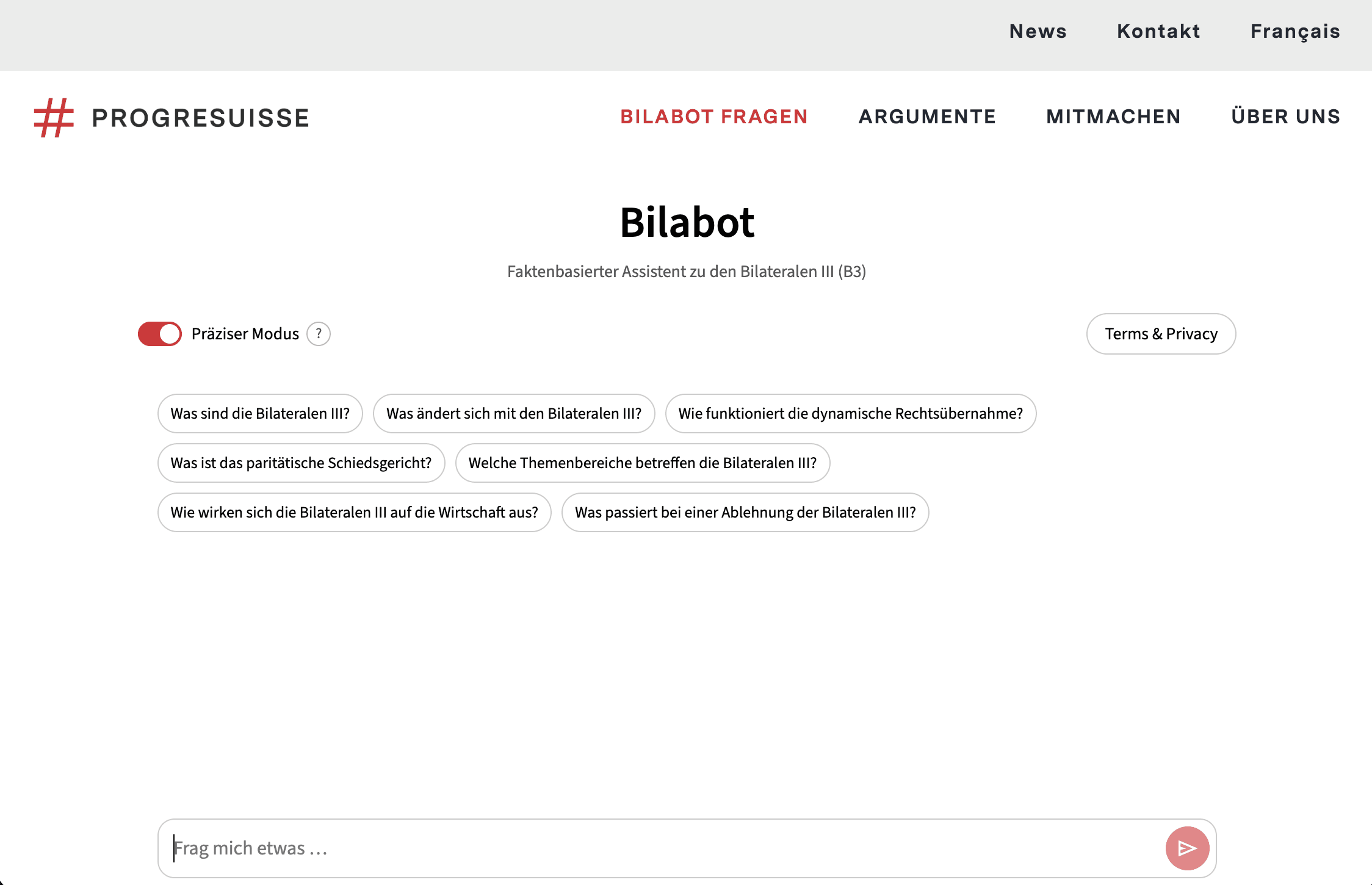 «Bilabots Leistung in nur wenigen Sekunden ist wirklich beeindruckend. Er beantwortet jede Frage in einfacher, sachlicher und verständlicher Sprache. Die Quellen sind mitunter sehr komplex. Bilabot arbeitet die wesentlichen Punkte mit grosser Klarheit heraus. Ausserdem möchte ich hervorheben, dass die Möglichkeit, mit einem einzigen Klick auf die Informationsquellen von Bilabot zuzugreifen und direkt zu Seite x eines 1000-seitigen Dokuments zu gelangen, bemerkenswert ist und jedem, der ein Thema eingehend tiefer einzutauchen möchte, enorm viel Zeit spart. Bilabot ist hervorragend und leistet einen wichtigen Beitrag zum Verständnis der Bilateralen III in all ihren Aspekten.»