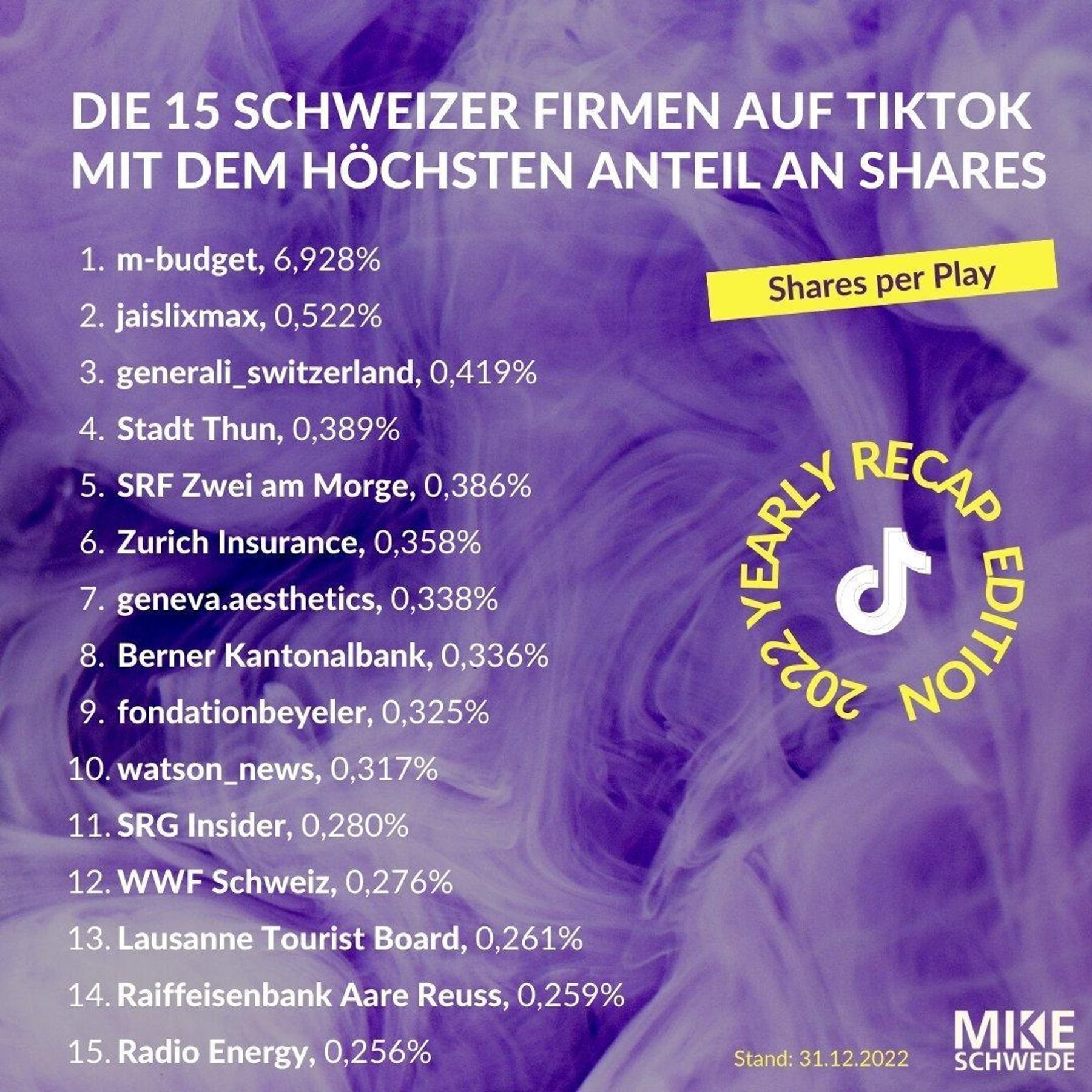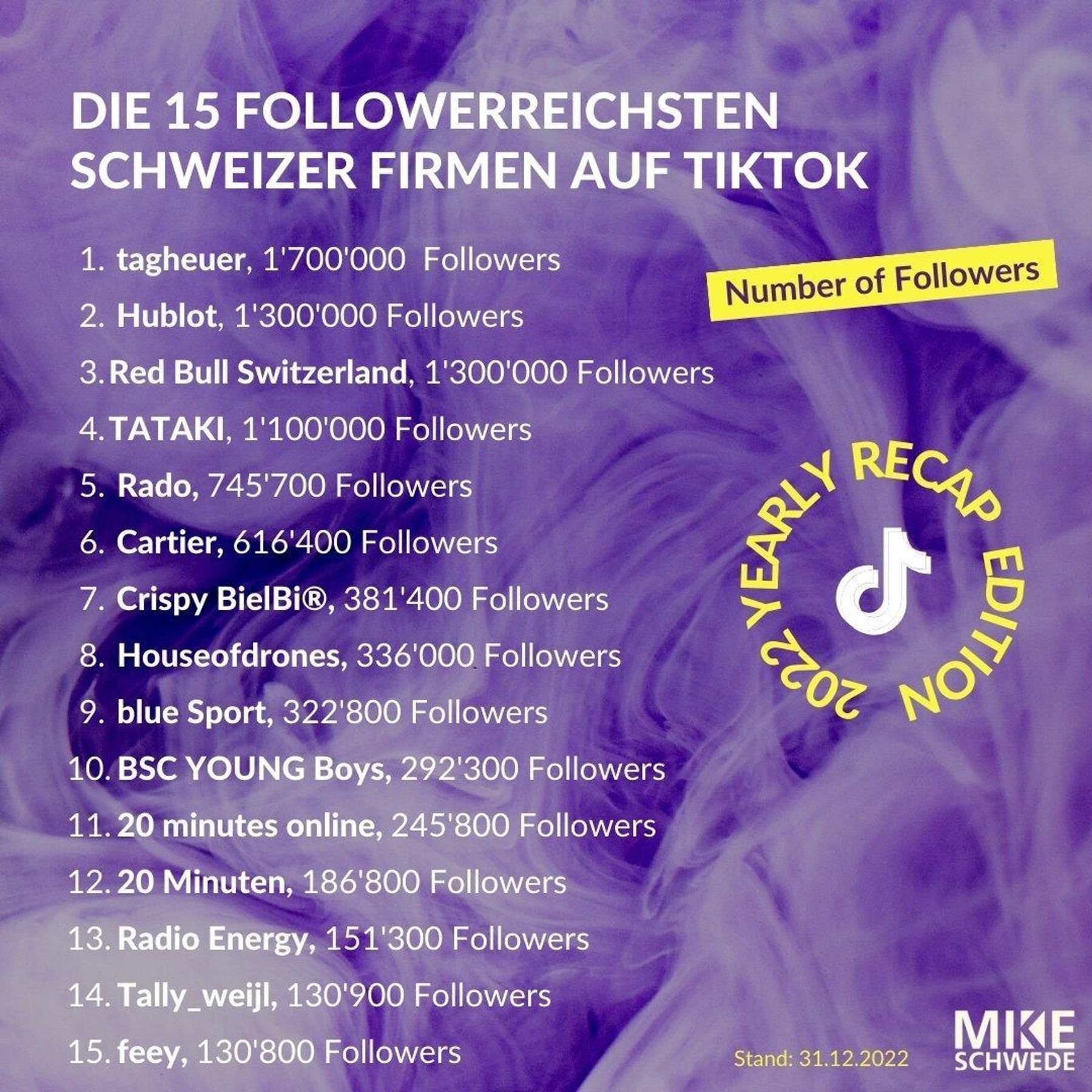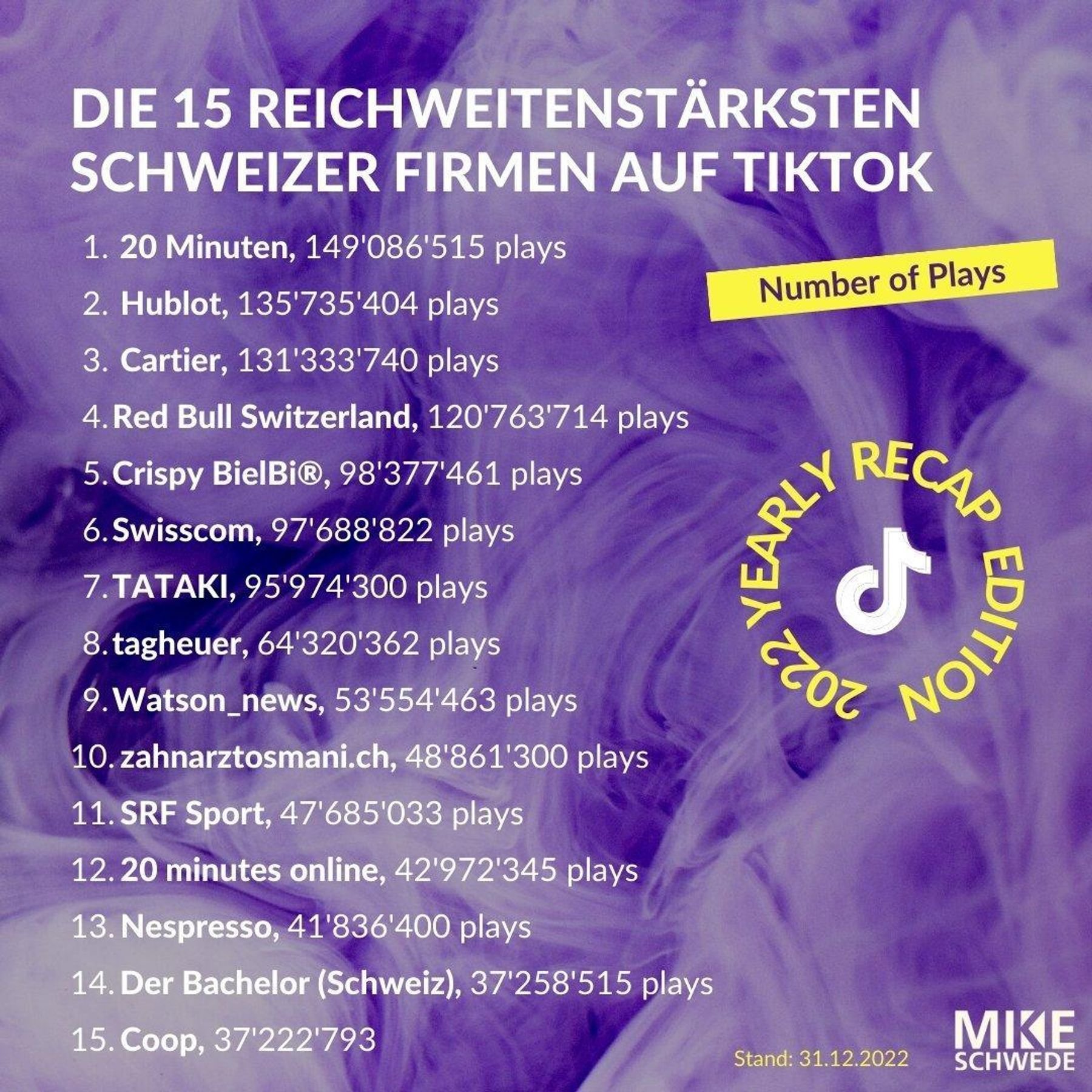 Ranking: Die erfolgreichsten Schweizer Marken und Firmen auf TikTok im 2022